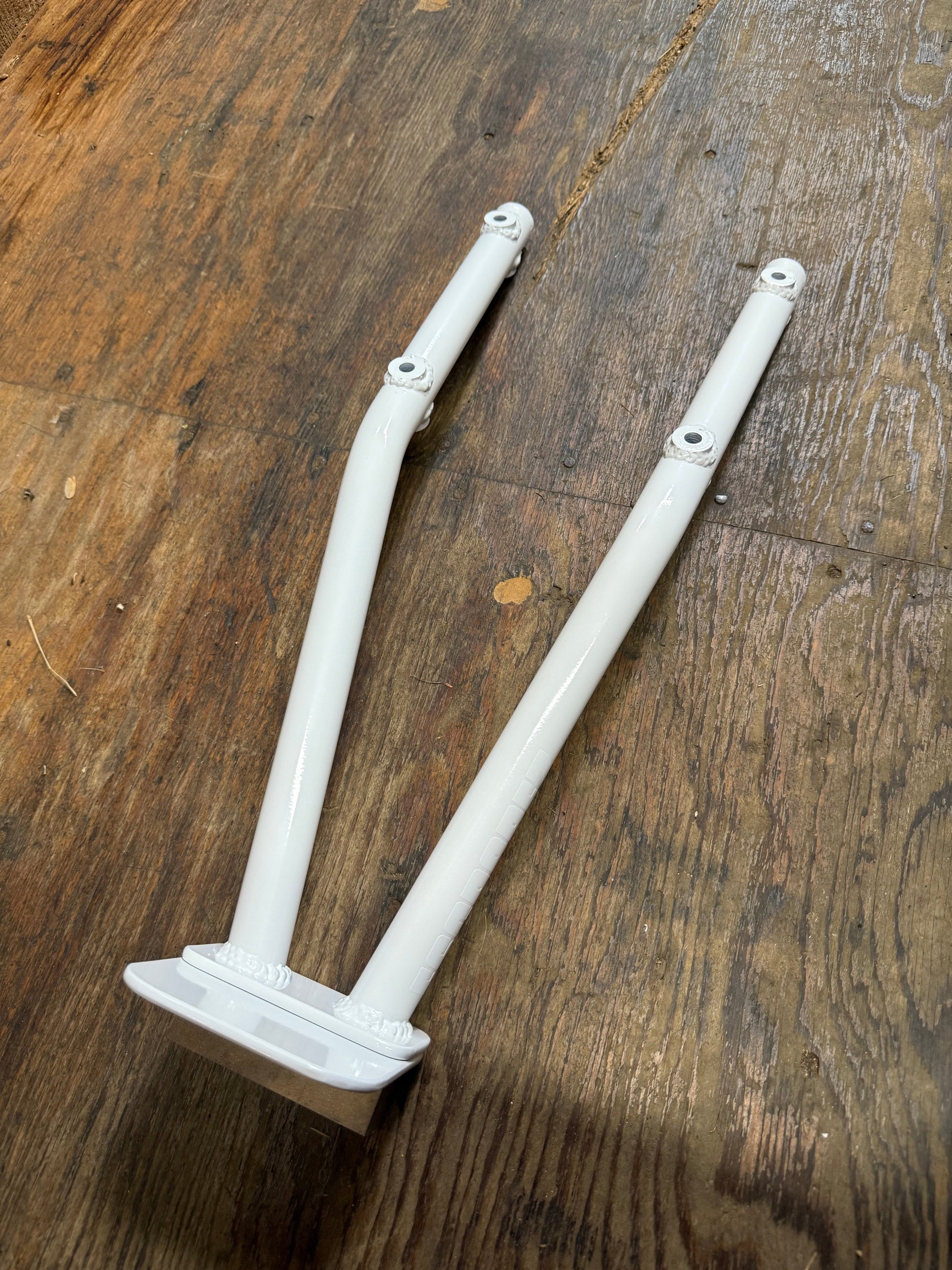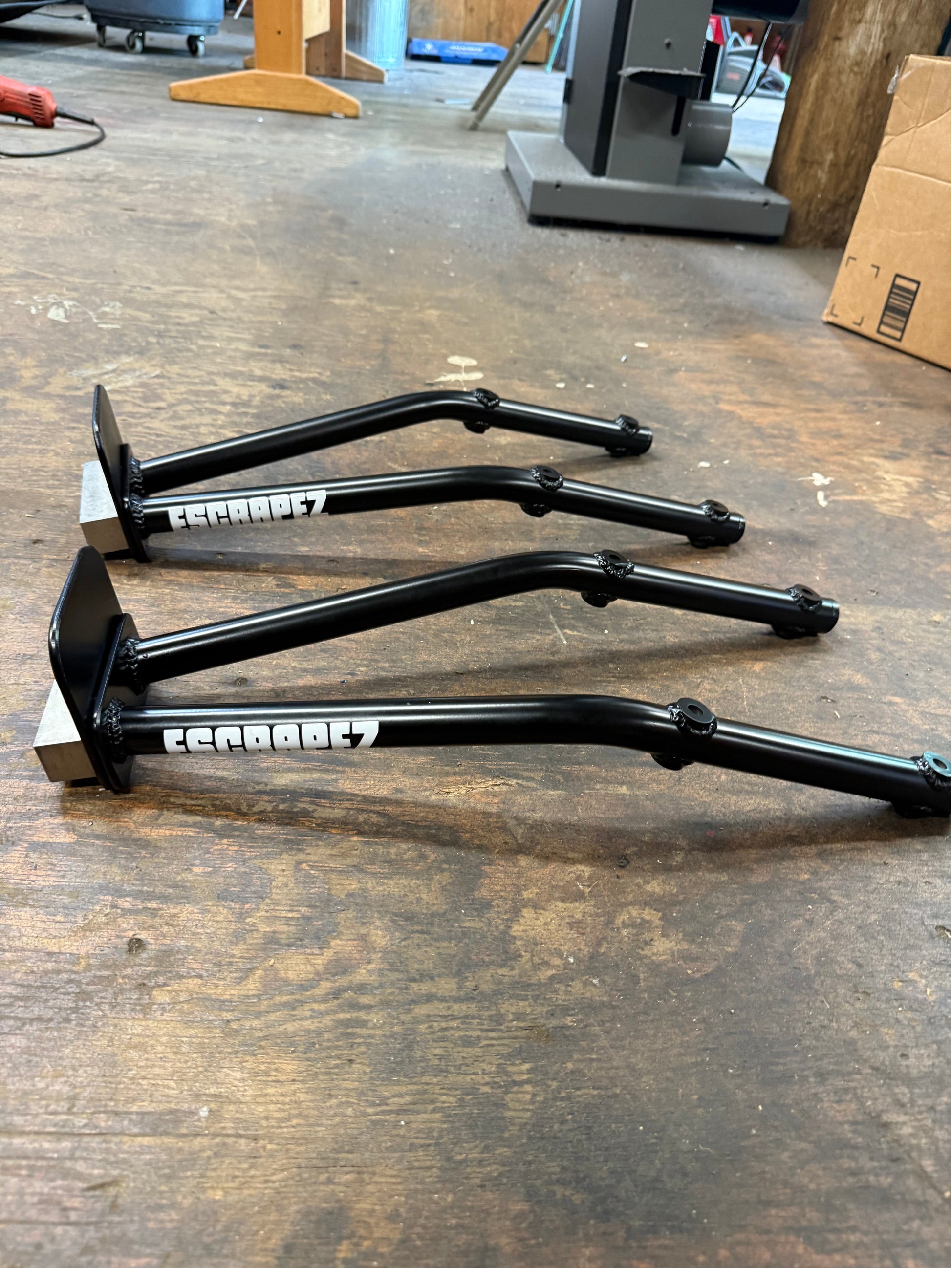 Surron Ultra Bee Stunt bar by E-scrapez is made 100% in America. Made from 1inch tubing for the most durability and light weight performance. Foot plate is removable to obtain everyone's different styles of riding. 2 5/8" center to center bolt pattern for block. E-scrapez stunt bar is the best 12 bar available for the SURRON ULTRA BEE. Designed to protect your subframe made from high quality steel. Engineered and tested for riders by riders. Happy 12 o'clock let the sparks fly. Tag @escrapez and on social media. #escrapez